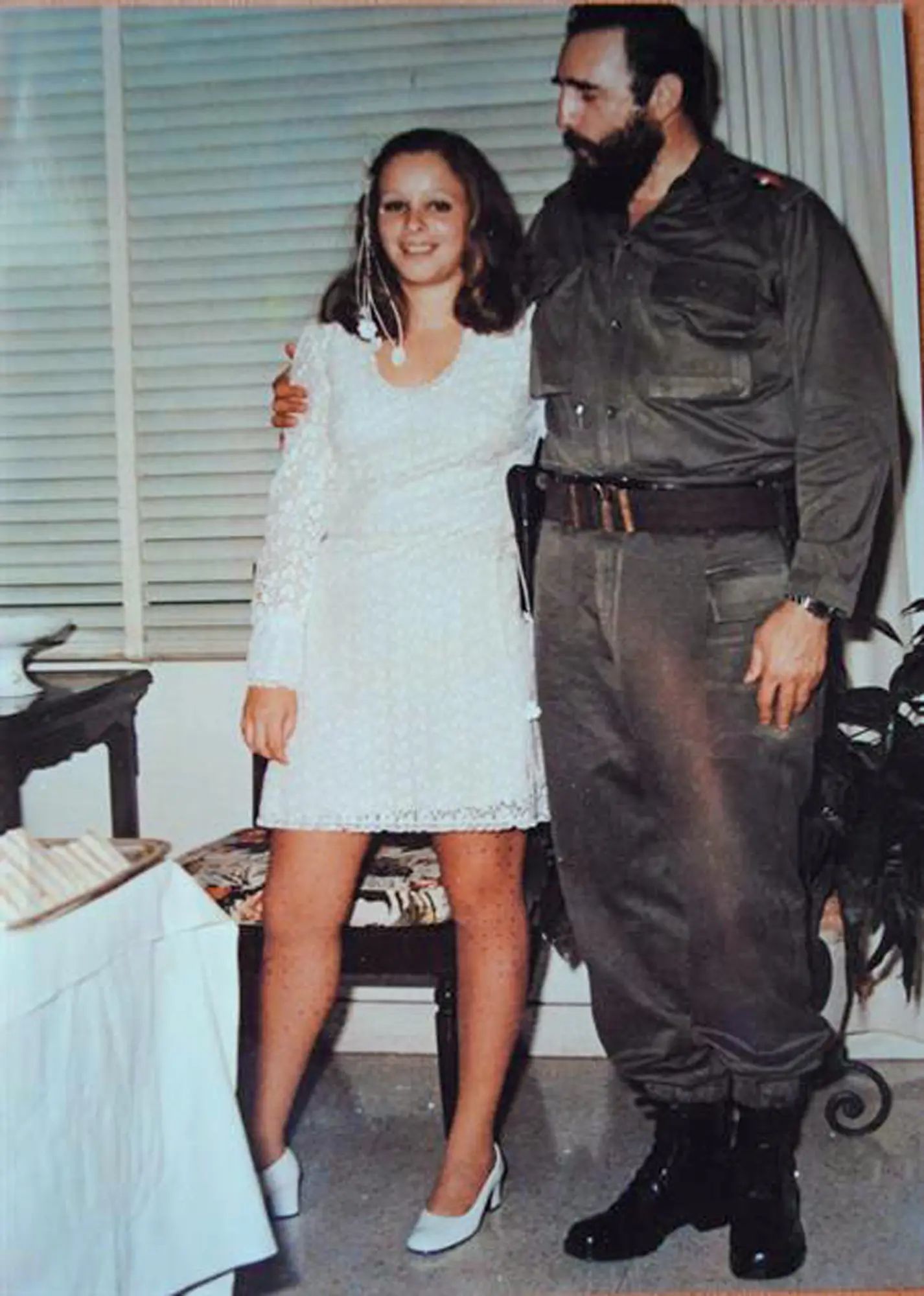 Alina Fernández Revuelta com Fidel Castro, celebrando seu casamento com Yoyi Jimenez em 1973. Desde jovem, Fernández tomou consciência da realidade do comunismo e mais tarde se tornou uma das críticas mais veementes do regime de seu pai. Foto: Alina Fernández Revuelta